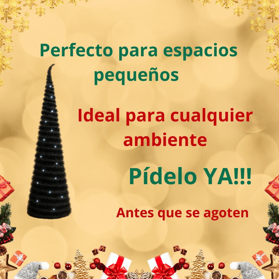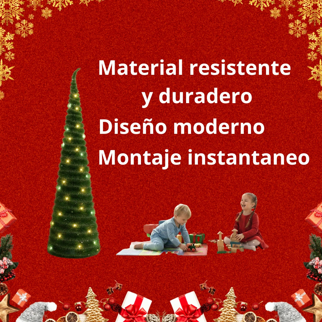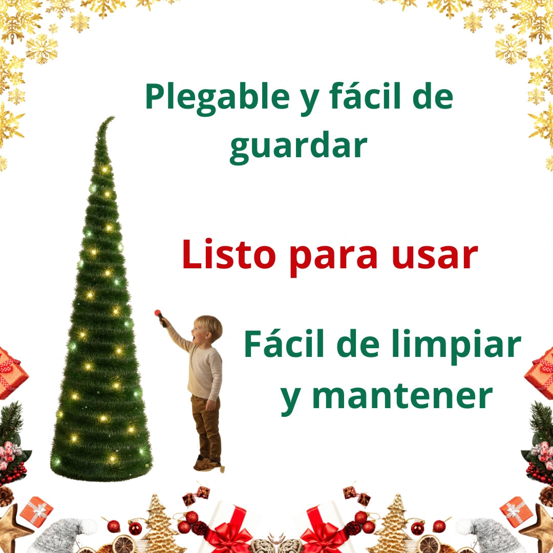 Árbol plegable 1,5 m con 200 luces LED. Diseño slim ideal para apartamentos y oficinas.